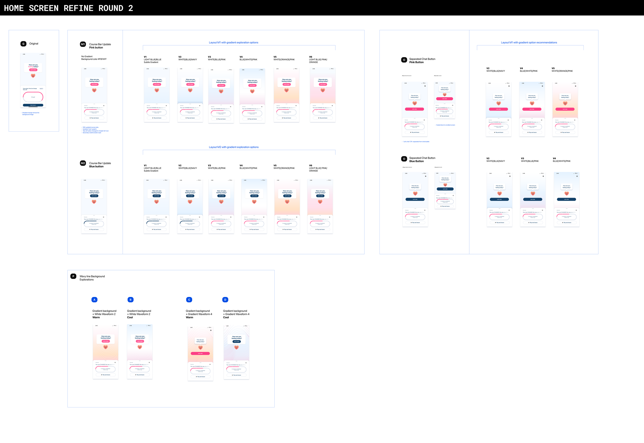 Constraints: At this time we are not ready to invest more engineering time into the visual look/feel of the overall app. Our plan is to invest in that effort along side our product vision and brand maturing/evolution work to take place over the next 2-3 months. We simply want to temporarily improve the aesthetics of our home screen. This means that fonts should remain the same, the overall user experience should remain the same. The functionality of the Courses section at the bottom should be maintained. Our hope is that these constraints will make this a easy to explore and ideate project.